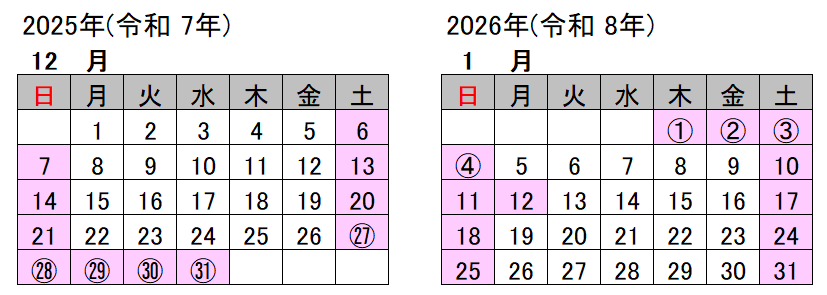 2025年12月27日(土) ~ 2026年1月4日(日)