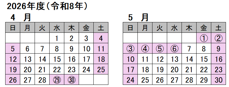 2026年4月29日(水) ~ 2026年5月6日(水)